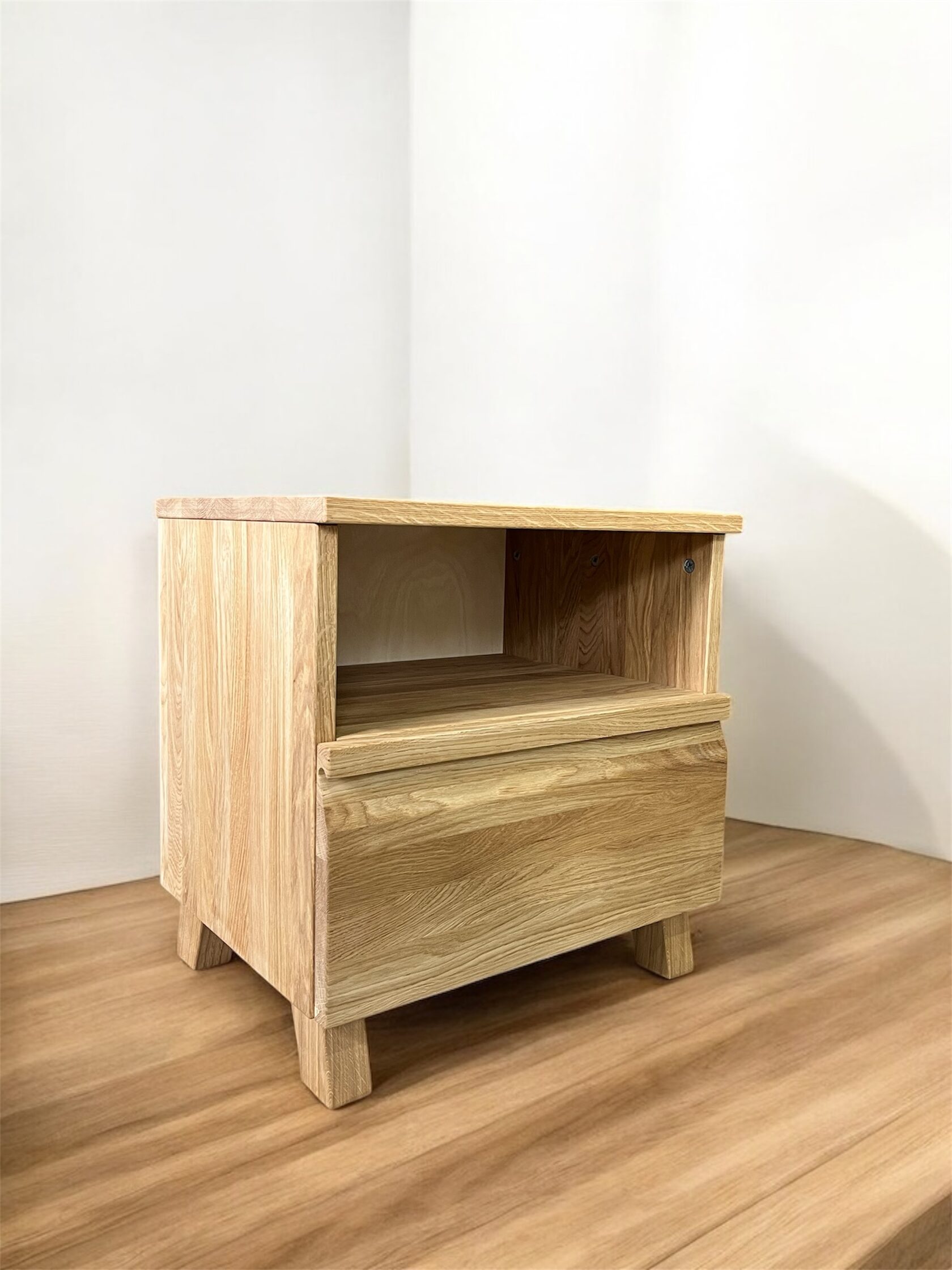 Стильная и функциональная прикроватная тумба, выполненная из натурального дуба. Эта тумба станет практичным дополнением вашей спальни, обеспечивая удобное хранение и эстетичный внешний вид. Натуральный дуб придает изделию тепло и естественную красоту, создавая уютную атмосферу в комнате. Особенности:
