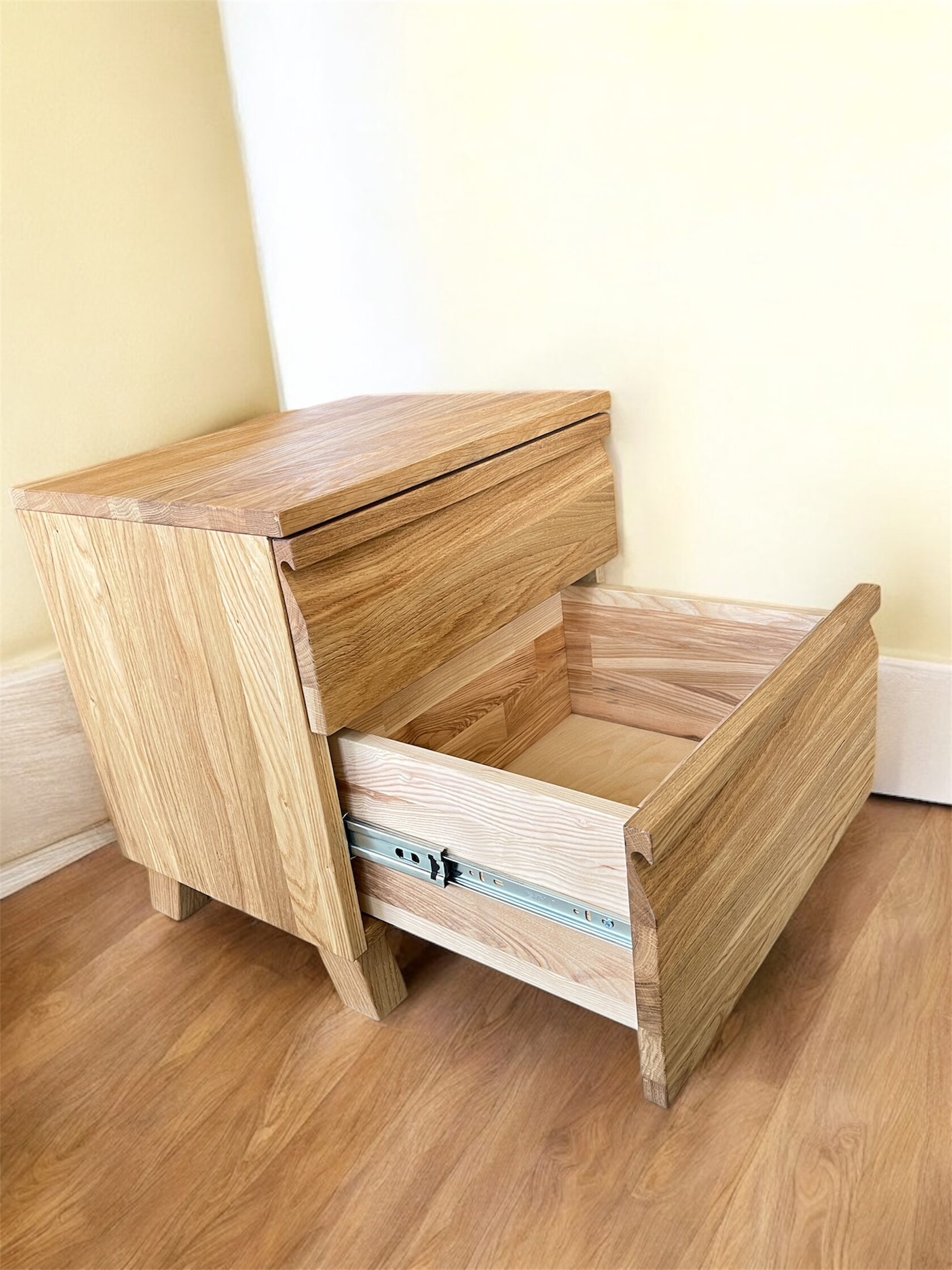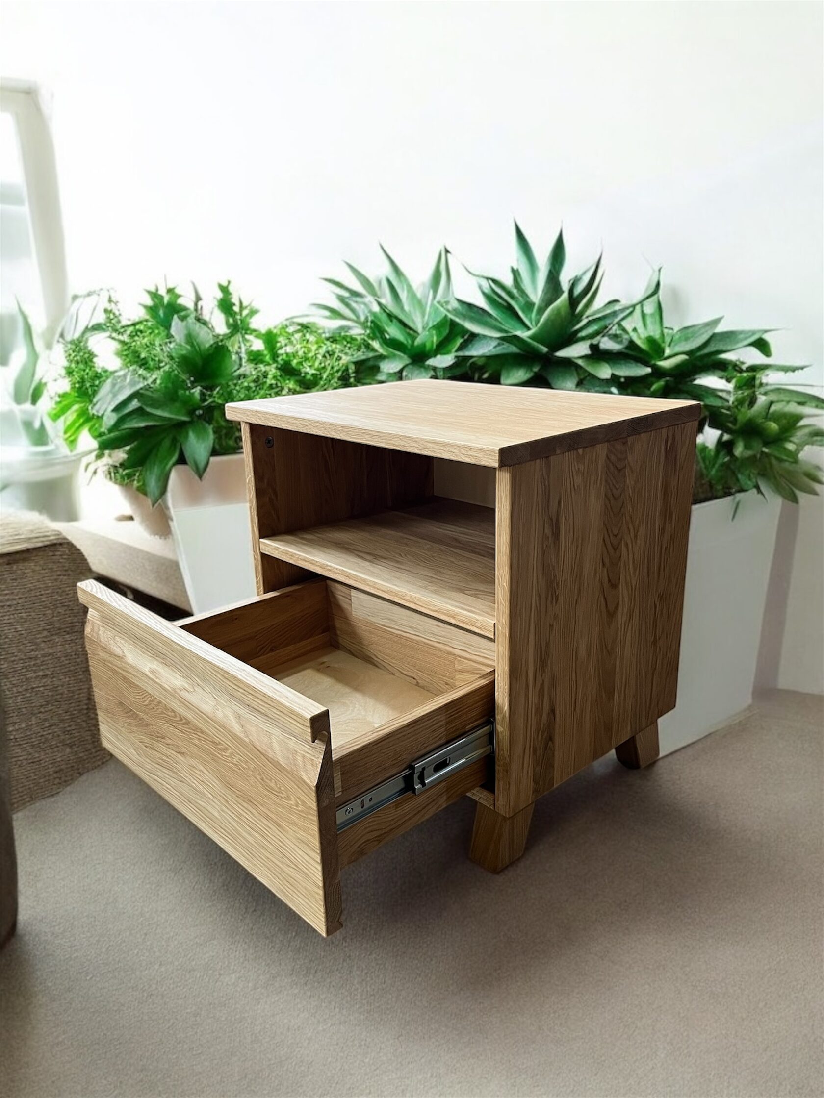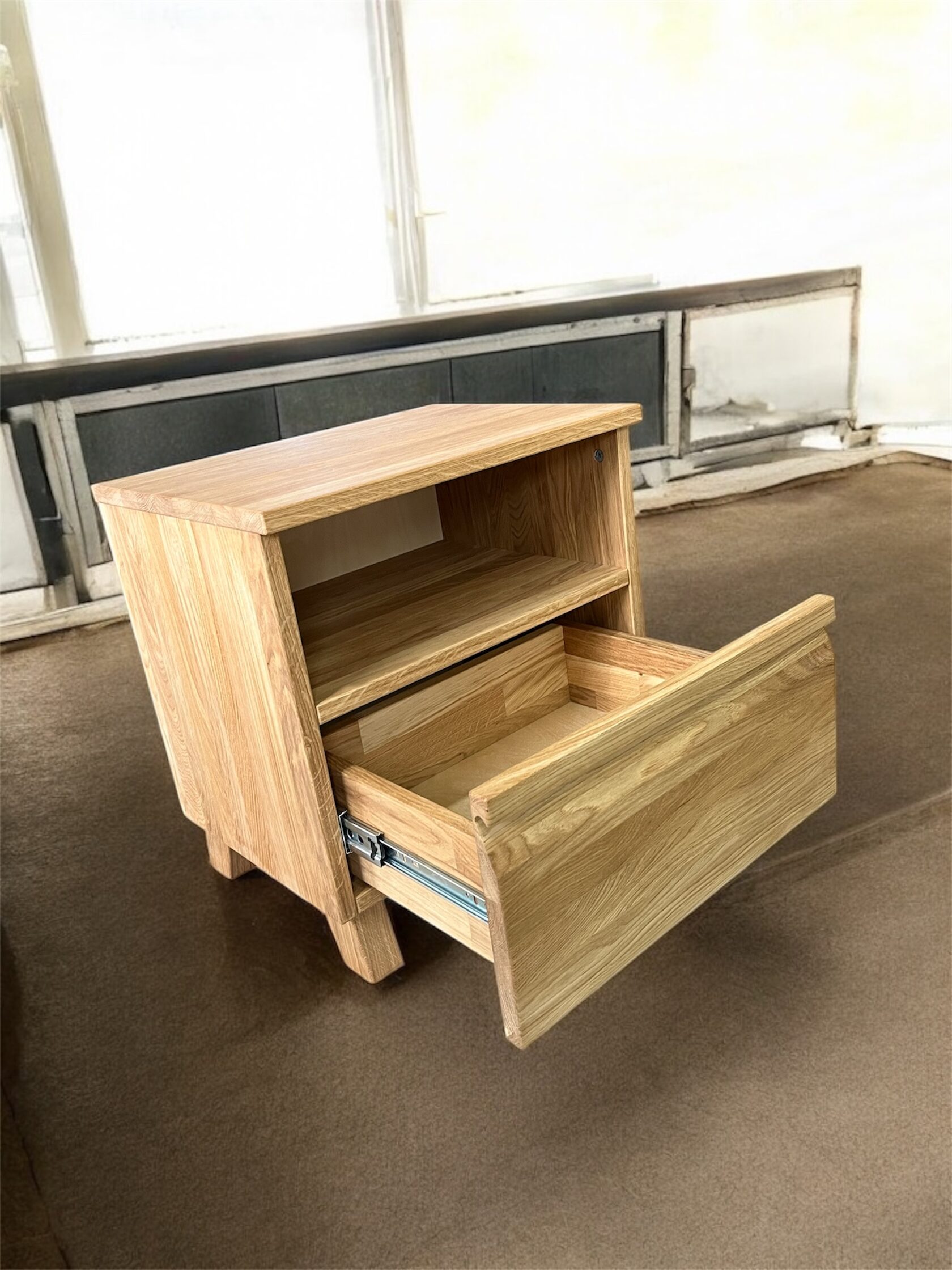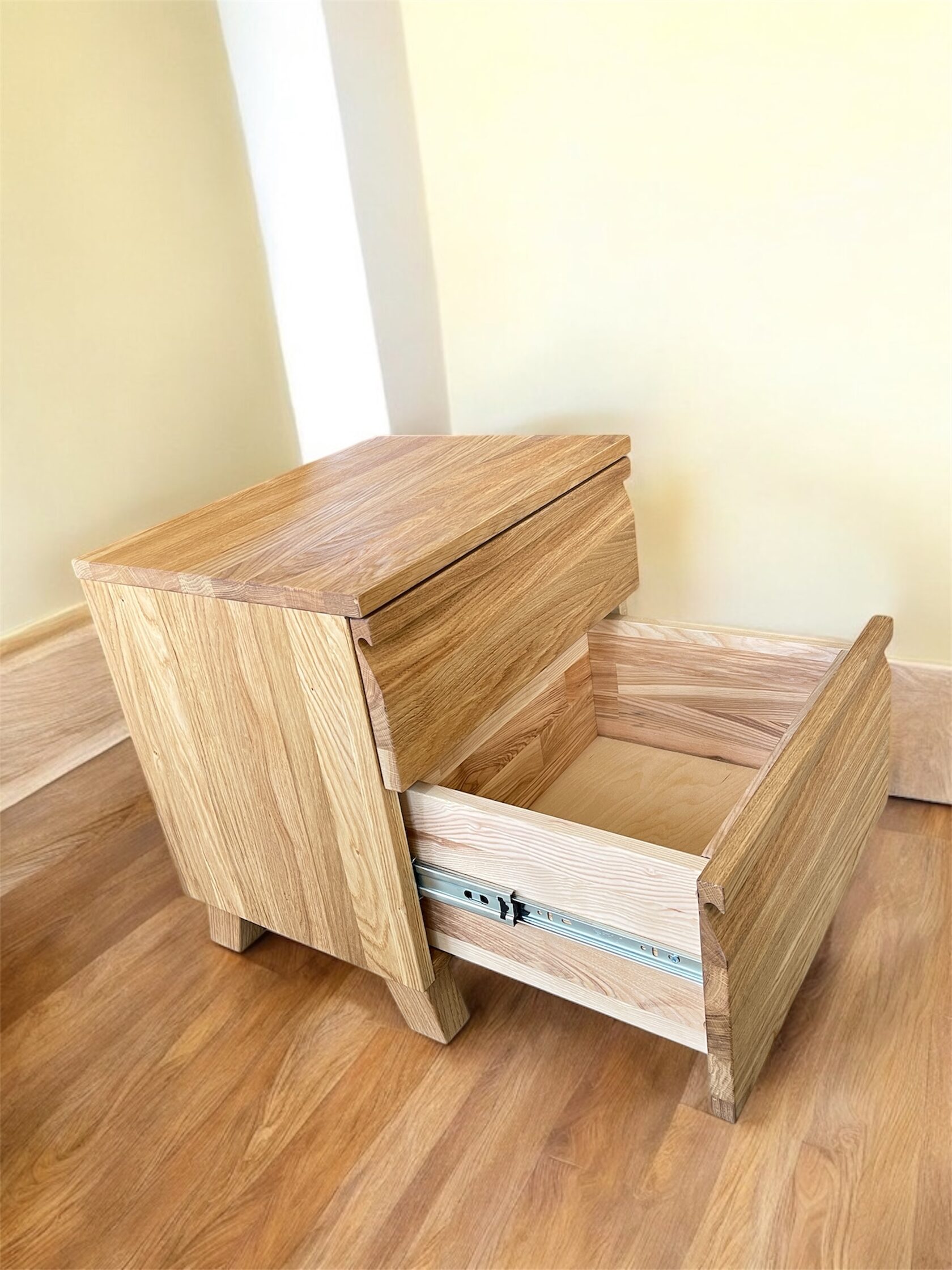 Эта прикроватная тумба из дуба станет надежным и стильным элементом вашей спальни, сочетая практичность с природной эстетикой.