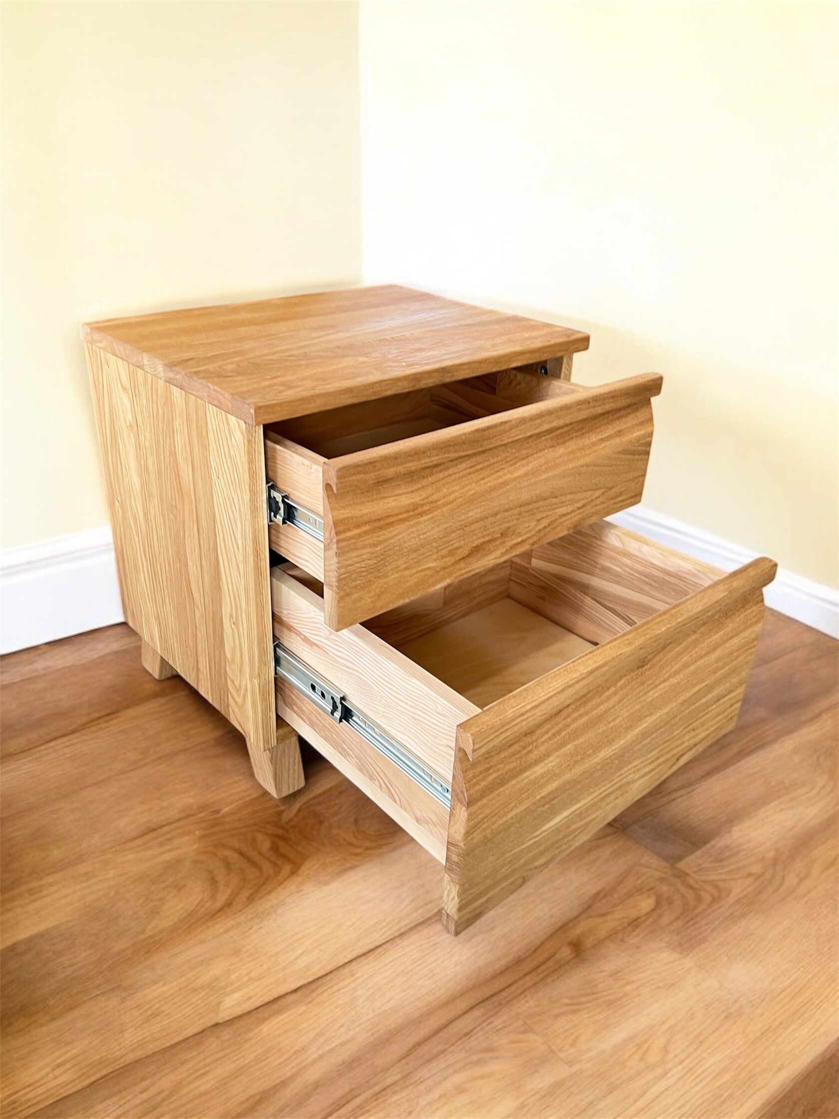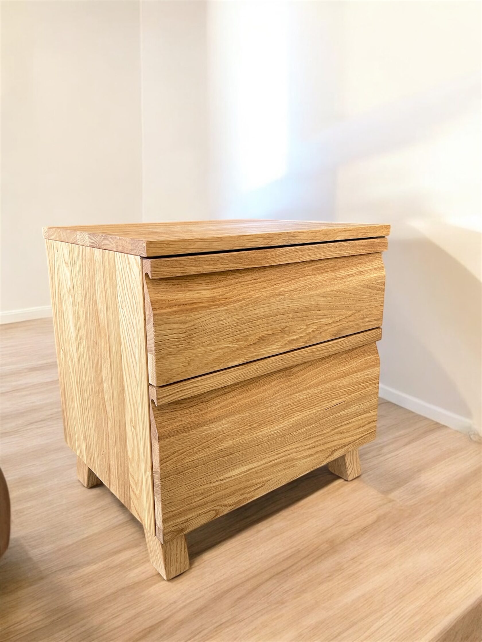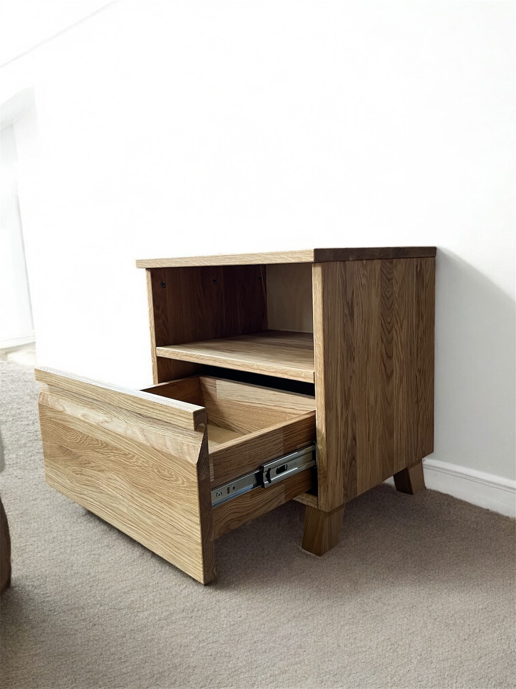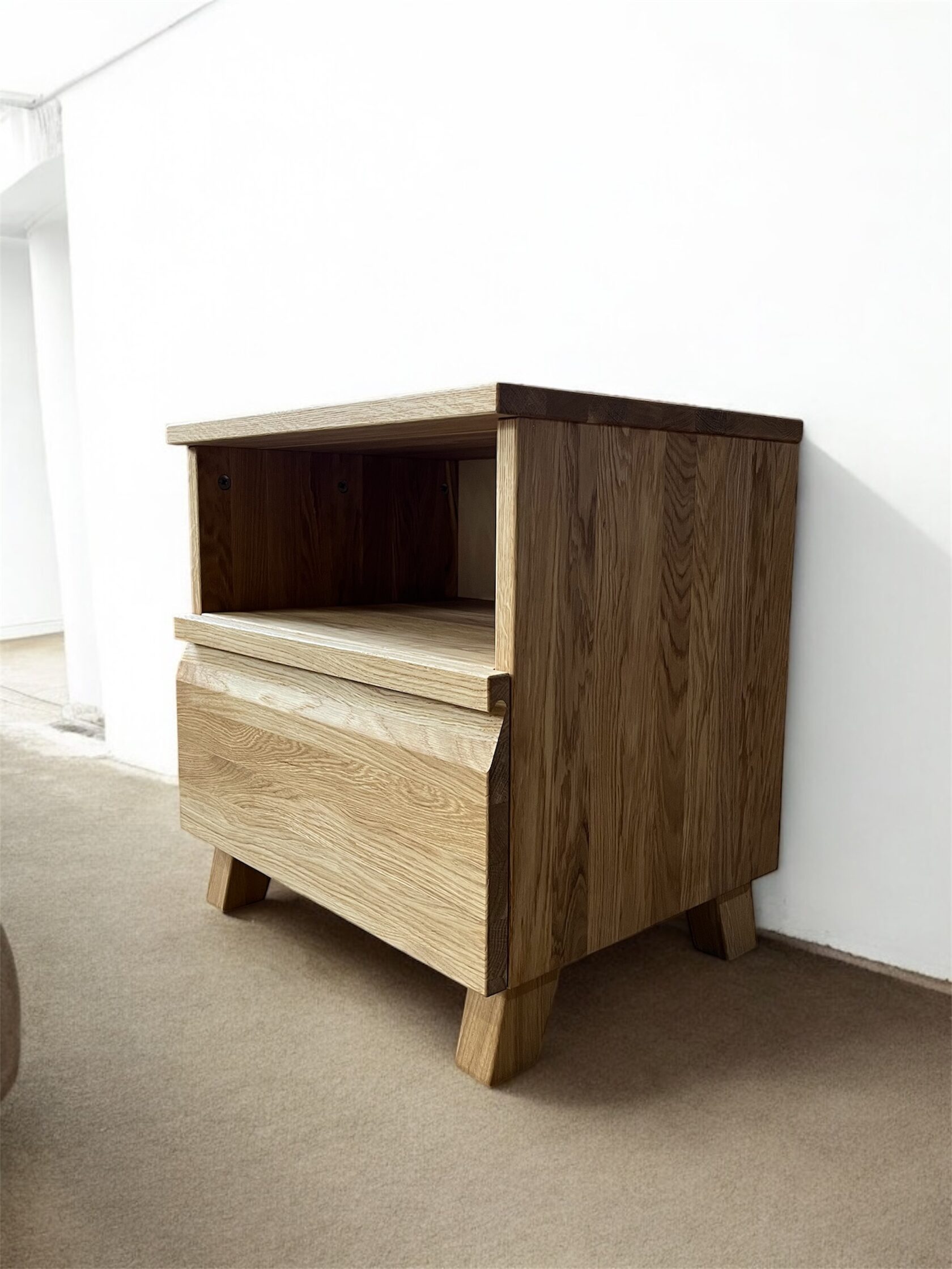 Эта прикроватная тумба из дуба станет надежным и стильным элементом вашей спальни, сочетая практичность с природной эстетикой.